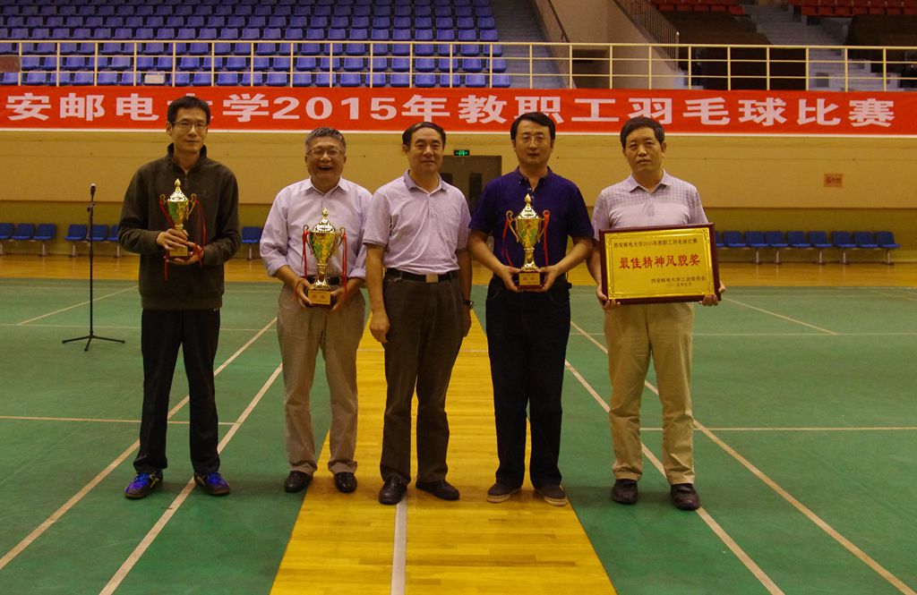 为丰富教职工业余文化生活,广泛开展群众性文体活动,由校工会主办,体育部、教职工羽毛球协会协办,我校2015年教职工羽毛球赛于9月21日至9月25日进行。本次比赛采用混合团体赛制,每队进行混双、男双、女双、男双、混双5场比赛,共15个分工会报名参赛。学校党委副书记刘永昌观看决赛并为获奖分工会颁奖。