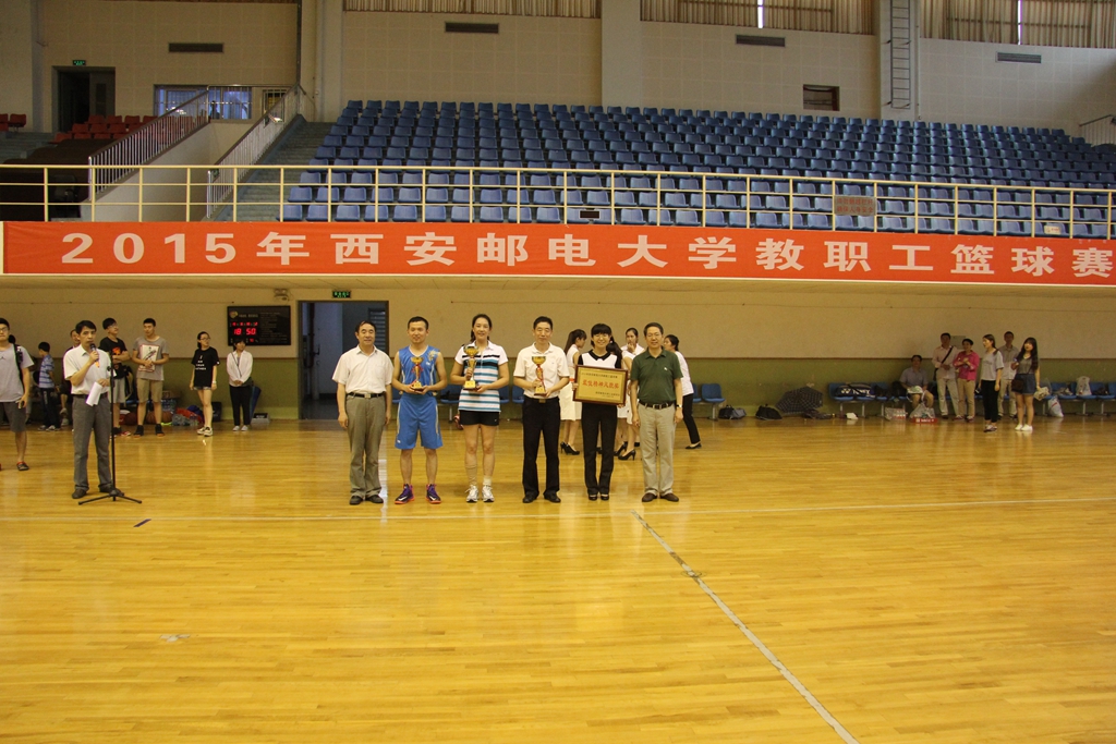 6月16日晚,西安邮电大学2015年教职工篮球赛圆满落幕,经过2周29场激烈角逐,机关一分工会代表队获得冠军,人文社科学院分工会代表队、通信与信息工程学院分工会代表队分获二、三名,电子工程学院分工会代表队获得最佳精神风貌奖。党委副书记、工会主席刘永昌、副校长贾明远现场观看决赛比赛,并为获奖代表队颁奖。