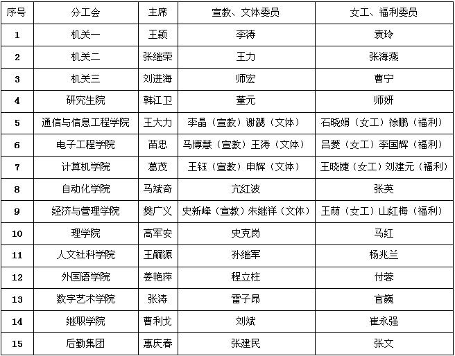 西安邮电大学分工会组织机构