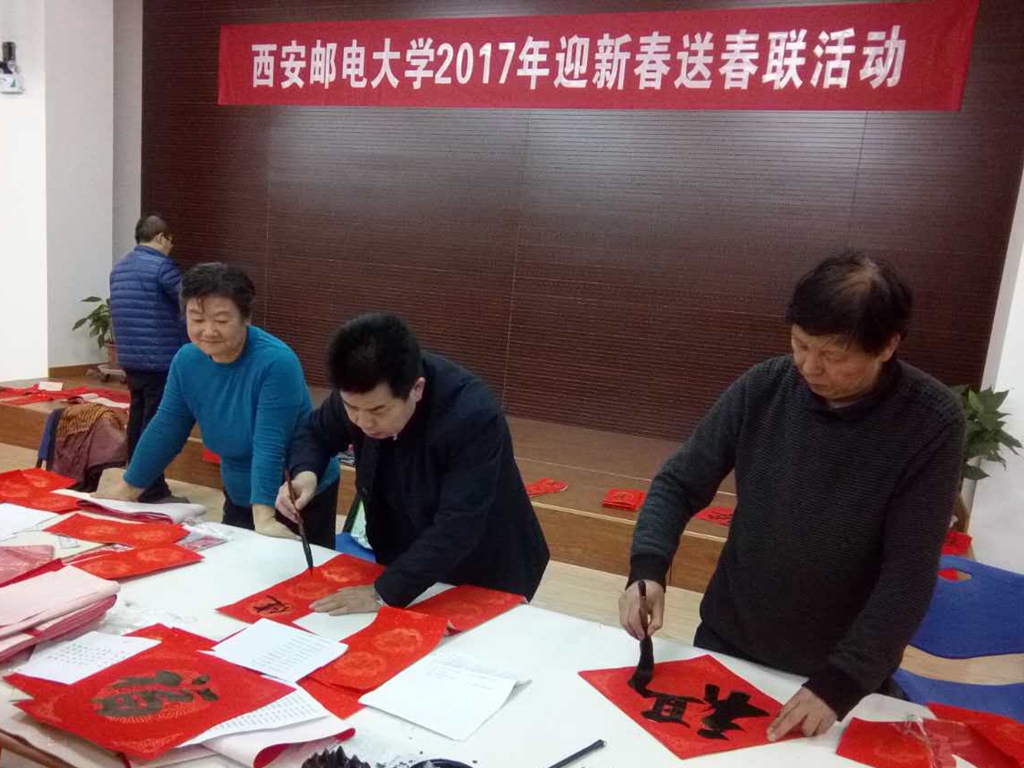 1月12下午,由校工会和教职工书画协会主办的西安邮电大学“迎新春、送春联”活动在教职工活动中心举行。