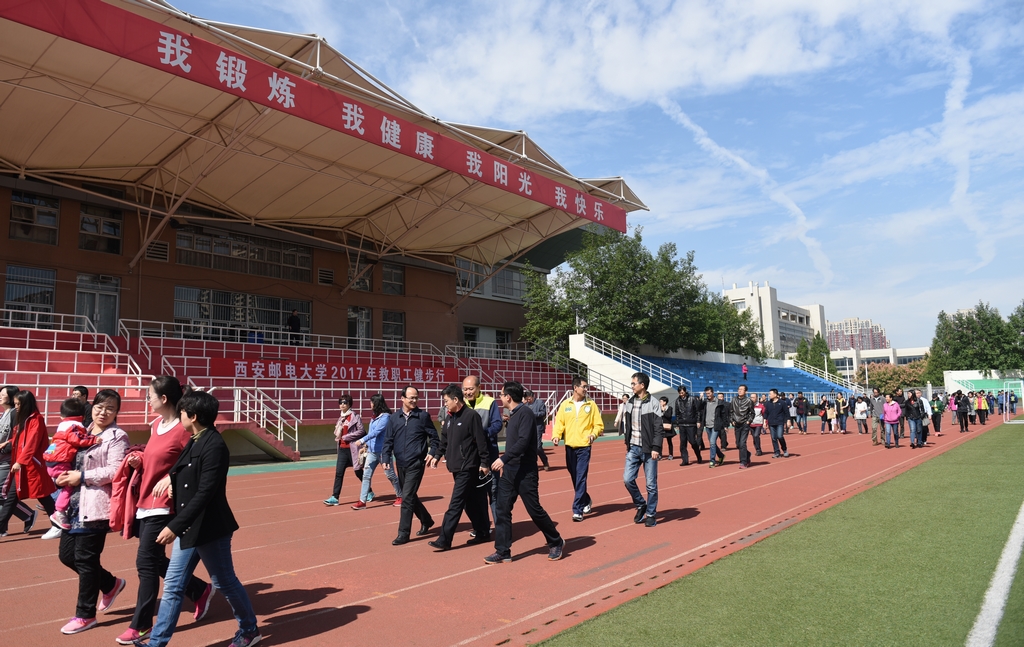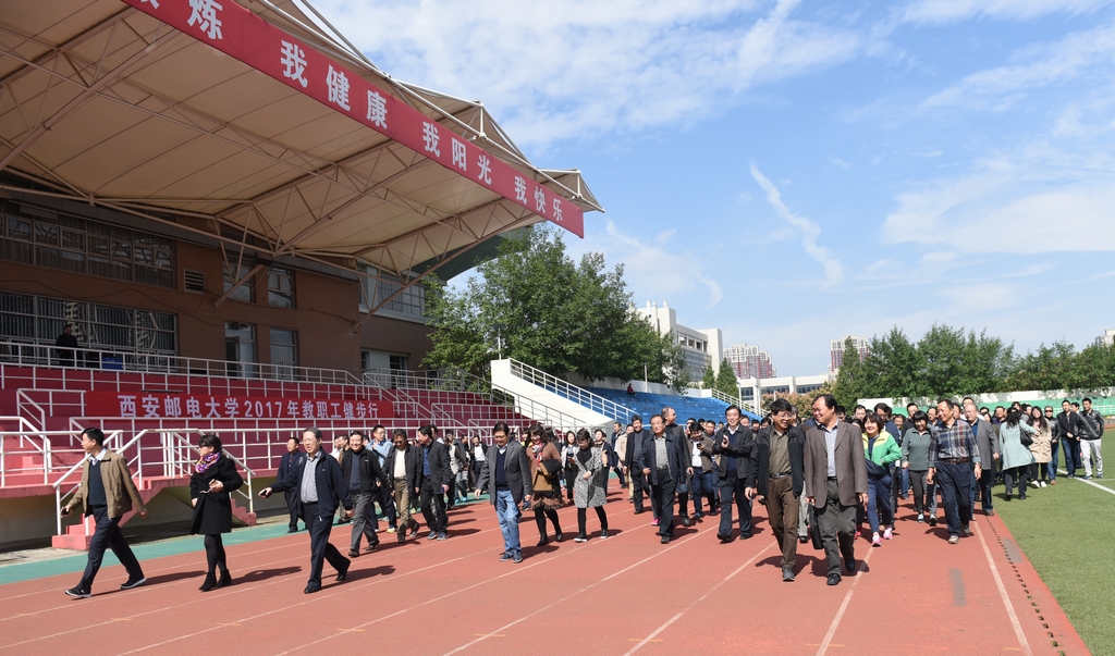 10月12日中午,雨后初晴,秋高气爽,西安邮电大学2017年教职工健步行暨首届互联网健步行活动启动仪式在长安校区西区田径场举行。全体校领导和近600名教职工参加了首日的健步行活动。