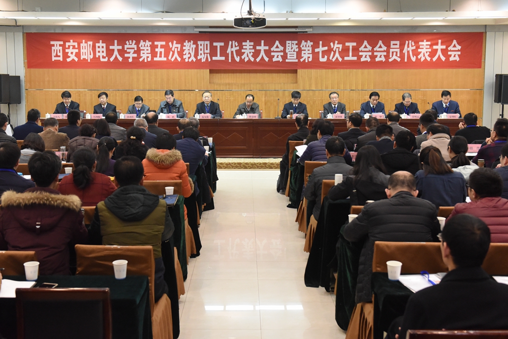 12月28日,西安邮电大学第五次教职工代表大会暨第七次工会会员代表大会在长安校区召开。省教科文卫体工会主席陈建树、副主席陈鹏,全体校领导,第五次教职工代表大会暨第七次工会会员代表大会正式代表、特邀代表、列席代表共137人参加了会议。会议由党委副书记张新柱主持。
