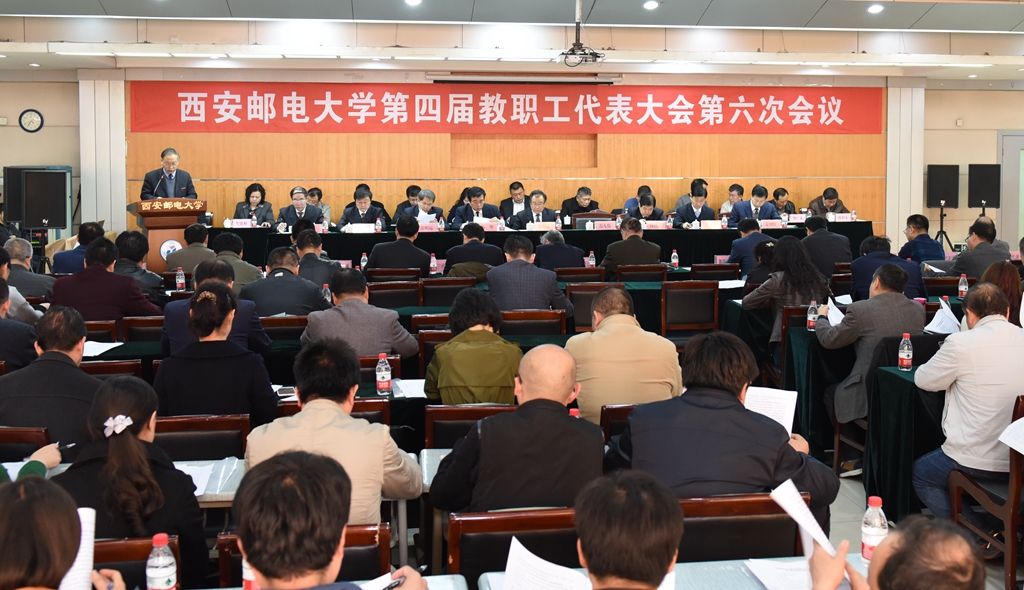 3月18日至19日,西安邮电大学第四届教职工代表大会第六次会议在长安校区学术交流中心隆重召开。学校领导崔智林、范九伦、苏华、刘永昌、孙冰红、贾明远、蒋林、冯智纲、安增旺出席会议,全校教职工代表114人、特邀代表4人、列席代表11人参加大会,共商西邮“十三五”改革发展大计。