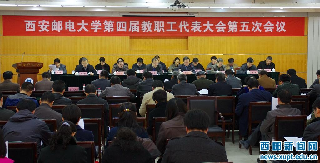 3月12日至13日,西安邮电大学第四届教职工代表大会第五次会议在长安校区学术交流中心隆重召开。学校领导卢建军、崔智林、刘永昌、贾明远、范九伦、蒋林出席会议,全校教职工代表112人、特邀代表4人、列席代表6人参加大会。