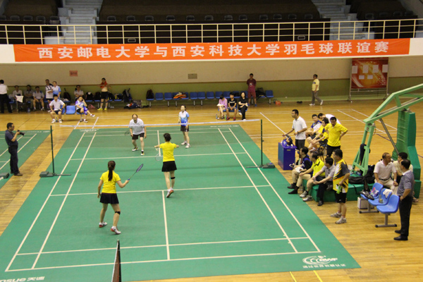 西安邮电大学与西安科技大学羽毛球联谊赛在我校长安校区体育馆举行,陕西省委教育工委常务副书记董小龙,校党委书记、校长卢建军,副校长温小郑,党委副书记、工会主席刘永昌,西安科技大学党委副书记张立杰、副校长张金锁参加比赛并为获奖团体颁奖。