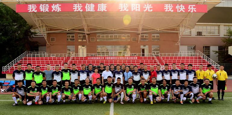 7月15日下午17时,西安邮电大学、中国联通陕西分公司校企共建足球友谊赛在西安邮电大学长安校区东足球场举行。中国联通陕西分公司副总经理李武、直属工会主席陈发斌,西安邮电大学党委副书记、工会主席刘永昌以及双方全体职工足球队员参加比赛开幕式。校工会常务副主席左建莉主持开幕式。
