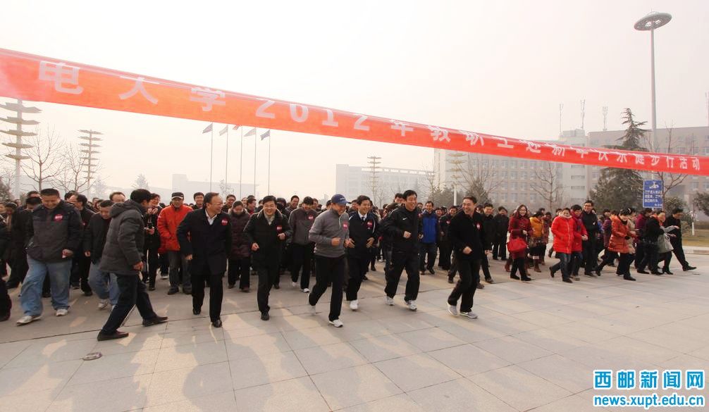 12月25日中午,随着一声清脆的发令枪响,以“健步迎新年,快乐你我他”为主题的我校2012年教职工迎新年快乐健步行活动在长安校区拉开帷幕。我校党委书记董小龙、副校长温小郑、苏华、纪委书记孙冰红、副校长范九伦出席启动仪式,并同教职工一起参与了首日健步行活动。校党委副书记、工会主席刘永昌在启动仪式上致辞,校青年教职工委员会主任商锋教授主持仪式。