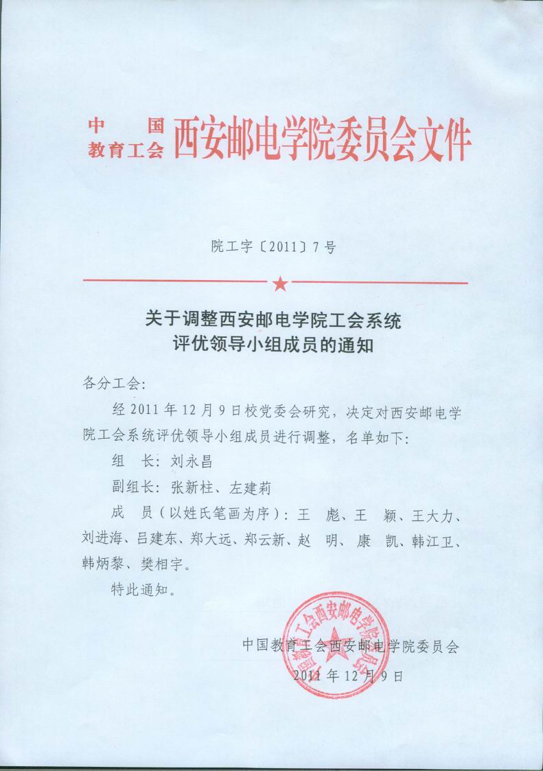 关于调整西安邮电学院工会系统评优领导小组的通知